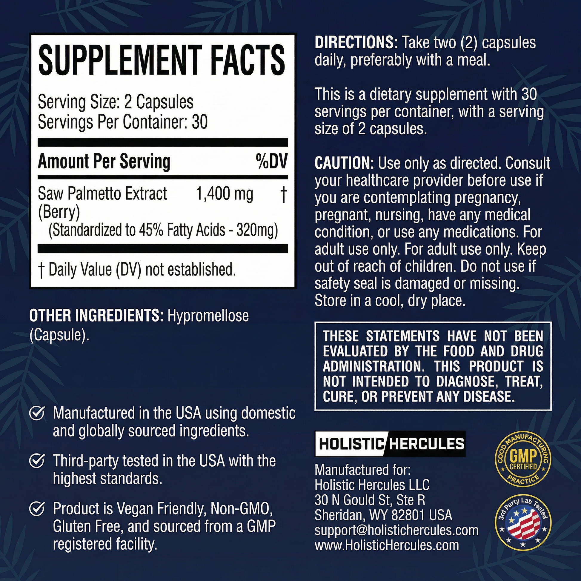 Holistic Hercules delivers 320mg of pure saw palmetto extract—the exact clinical dose proven to reduce inflammation, stop smooth muscle spasms, and restore healthy urinary function.